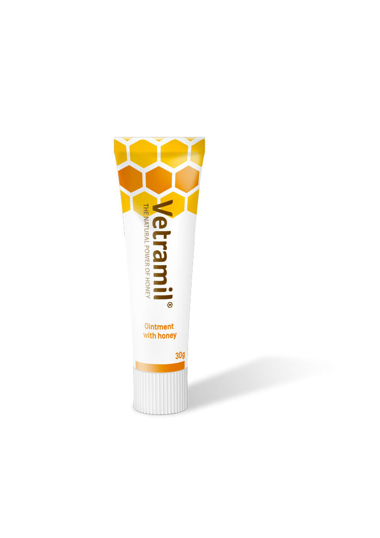Vetramil ziede ir īpaši izstrādāta dzīvniekiem ar raupju un kairinātu ādu. Vetramil medus ziede satur medu ar augstu dabīgo enzīmu līmeni. Medus ir labi zināms ar savām labvēlīgajām īpašībām ādas veselības uzturēšanā.